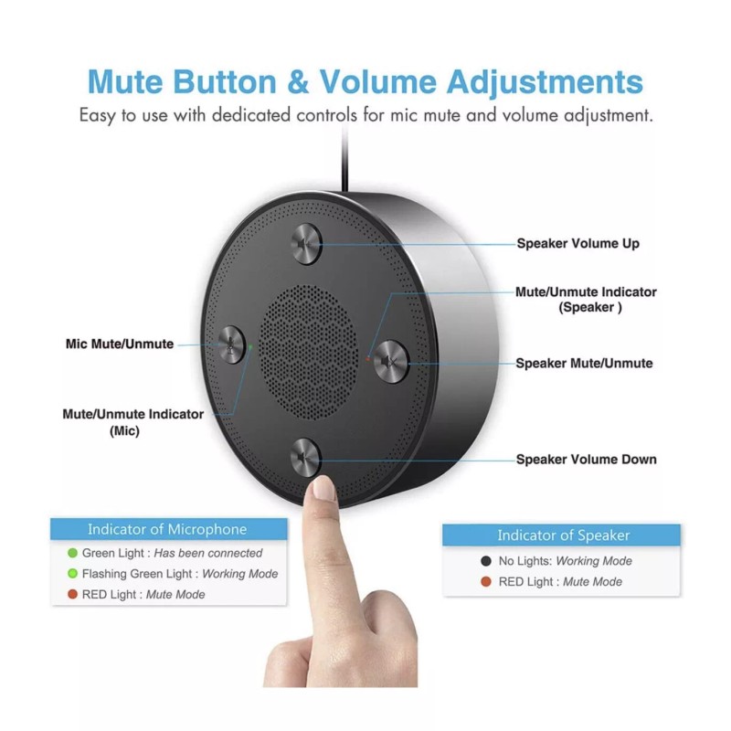 - Convenient Mute Button & Speaker Volume Control - Quickly mute/unmute your microphone and adjust the speaker volume, the built-in Indicator LED lights tell you the working status