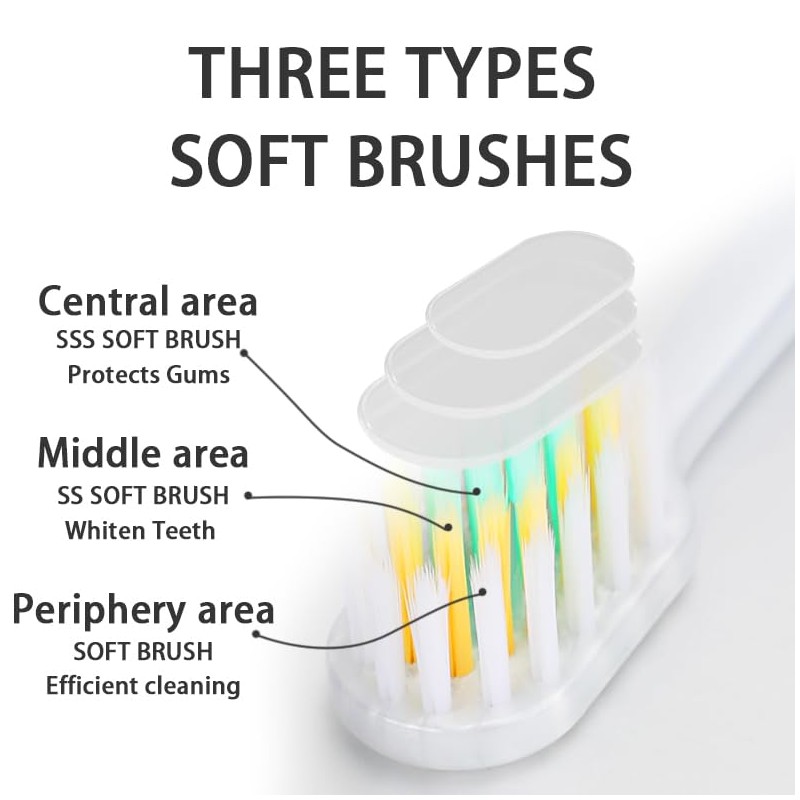 Ultra-Soft & Super Soft Tapered Bristles. Our innovative design features 3 layered flossing bristles that reach deep into grooves where most cavities form. These ultra-thin bristles remove plaque from hard-to-reach areas, mimicking the benefits of flossing for a cleaner, fresher mouth.