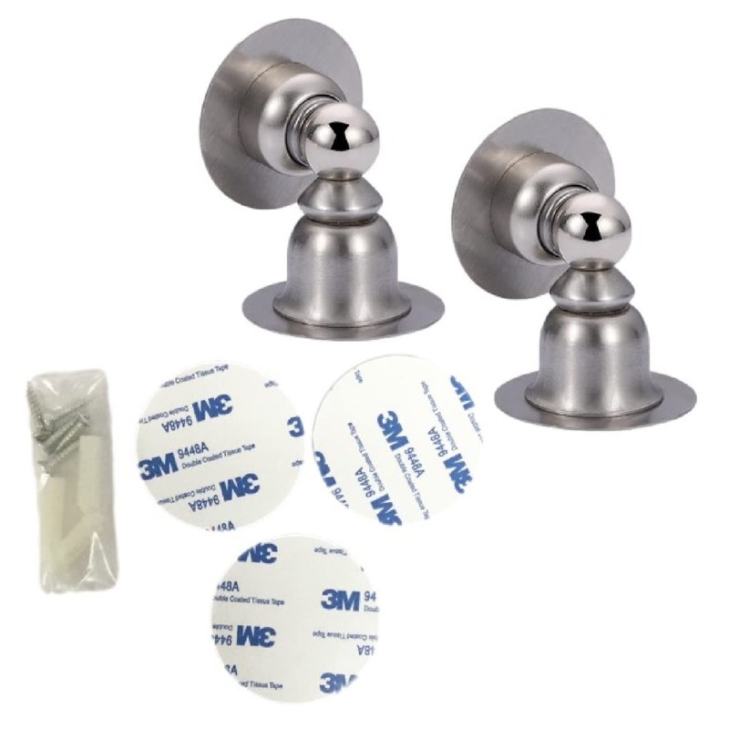 - Convenient door stopper for use on interior doors and entrance doors: This magnetic door stopper can not only fix the door, but also absorb shock when opening and closing. The coil spring is built in in the receiver to absorb impact when opening the door. Helps prevent scratching adjacent walls