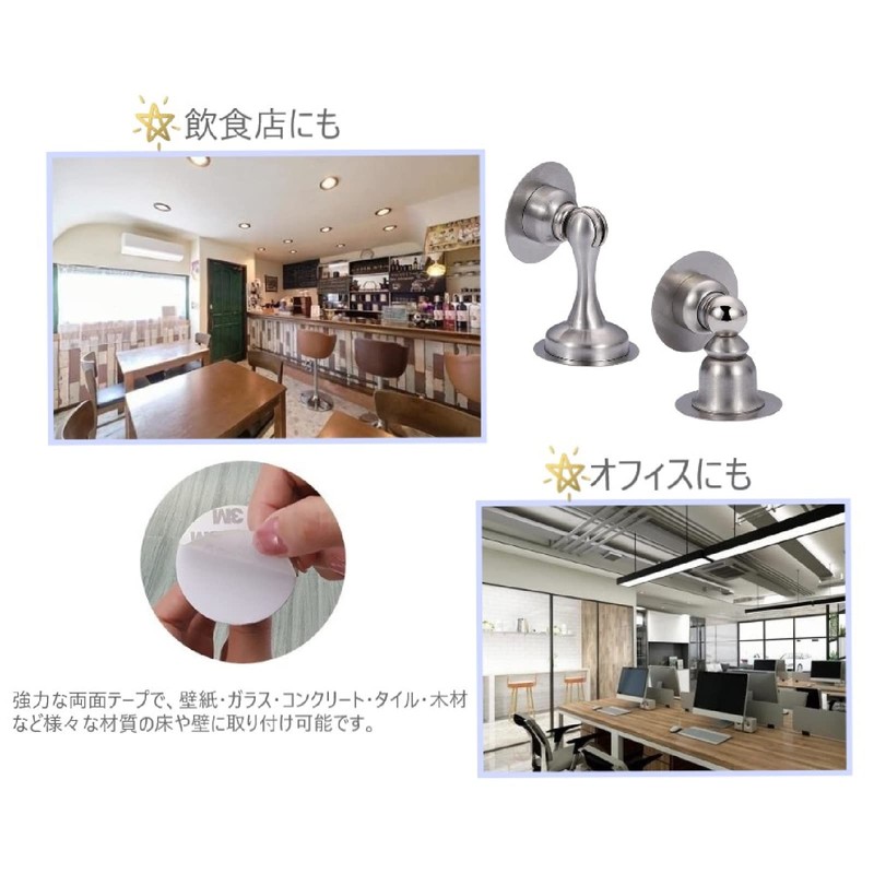 - (Useful in a Variety of Locations) The strong double-sided tape allows it to be attached to floors and walls of various materials such as wallpaper, glass, concrete, tile, and wood. Not only at home, but also in the office or restaurant