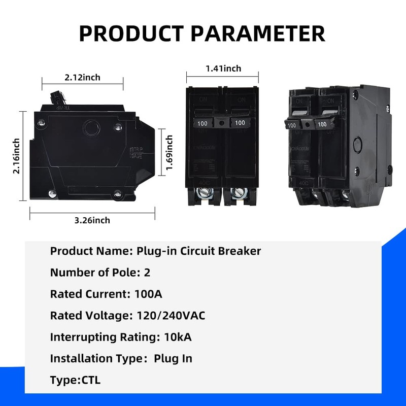 - ♥【What You Get】There is a 100 Amp 2 pole plug-in circuit breaker in the package.It's best to check the product status the first time you receive the goods.