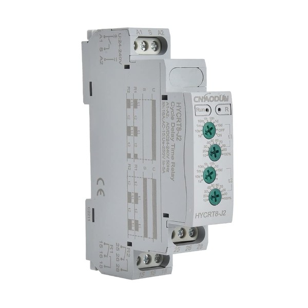 CNAODUN Asymmetric Cycle Time Relay HYCRT8-J2 0.1s-10days AC/DC 24-240V 2 Outputs Cycle Time Delay Relay DIN Rail Mount Type