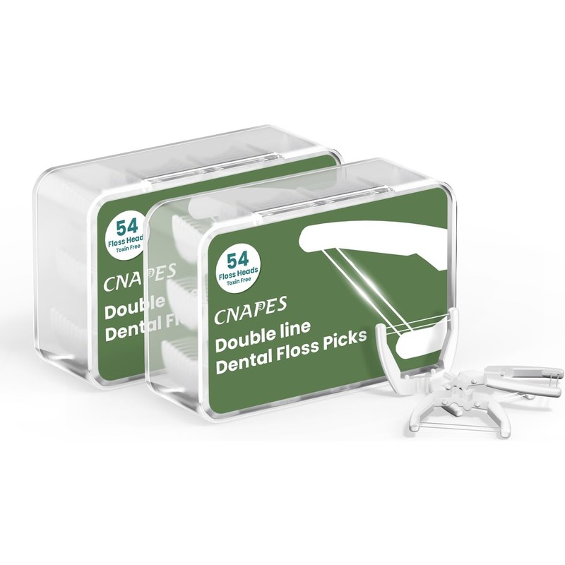 CNAPES Flosser Refills, Dental Floss Picks Heads Replacement, Easy Glide Flossing, Double-Line Floss, 108 pcs(2 Box)