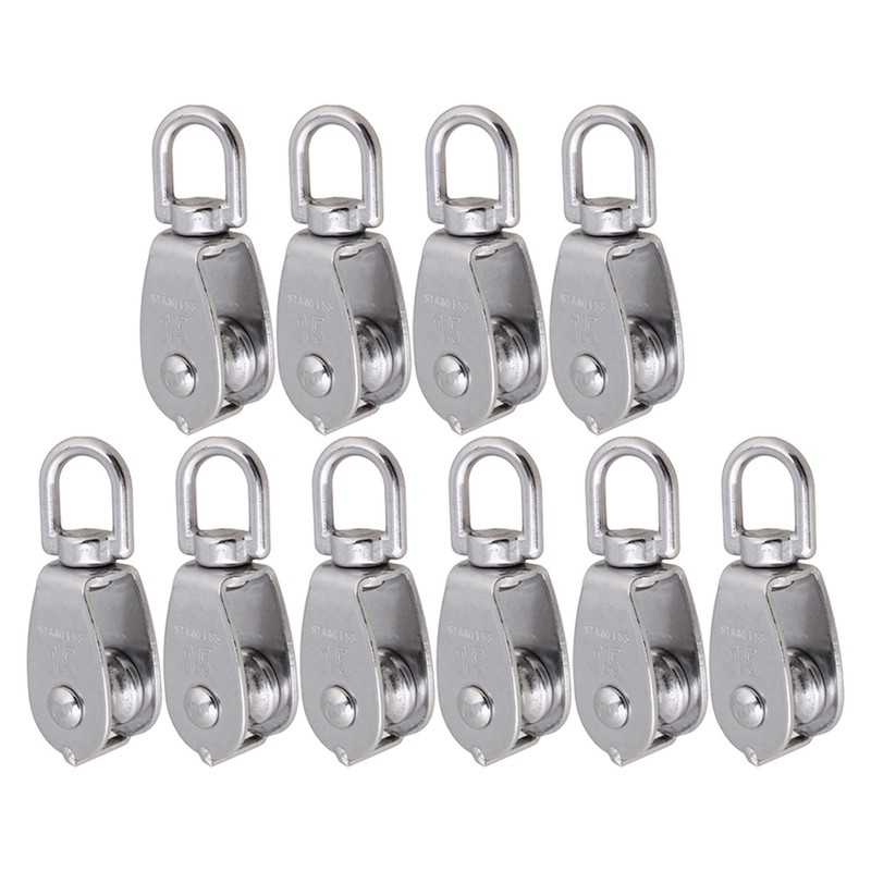 CNBTR M15 Single-Sheave Block Rope Pulley Block Traction Wheel Stainless Steel Pack of 10