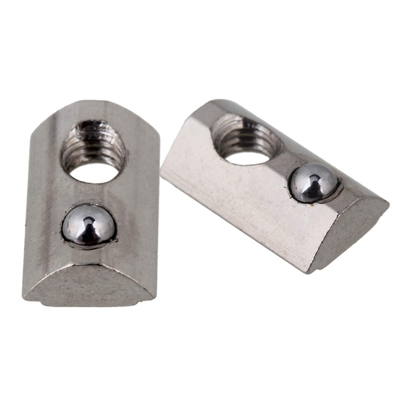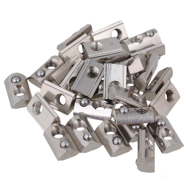 CNBTR Silver European Standard 20 Series Aluminum Slot Carbon Steel Half Round Roll In Spring T Slot Nut with M4 Thread Pack of 30