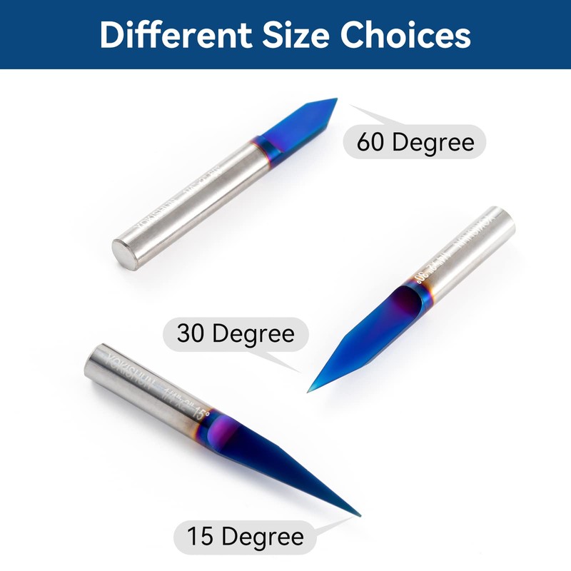 CNC Router Bits 30 Degree Engraving Bits 0.005 Tip with 1/4 Shank Nano Blue Coat Solid Carbide V Groove Router Bit for Signmaking Carving