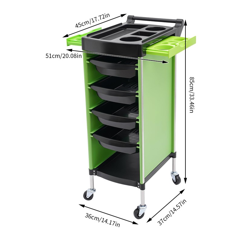 - 【Easy to Access】The top tier with an open design has multiple compartments and the 4 middle drawer-type shelves can be pulled out smoothly in two directions, making it convenient for you to access and store various tools and salon supplies.