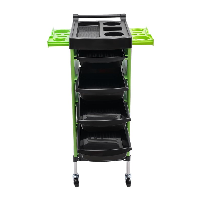 CNCEST 6-Tier Salon Trolley,Hairdressing Shelf with Handle and Lockable Rolling Wheels,4 Drawers and 2 Hair Dryer Holder Side Tray (Green)