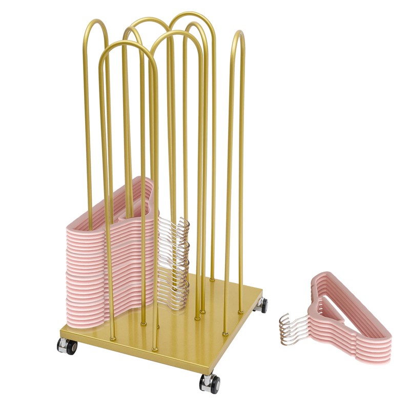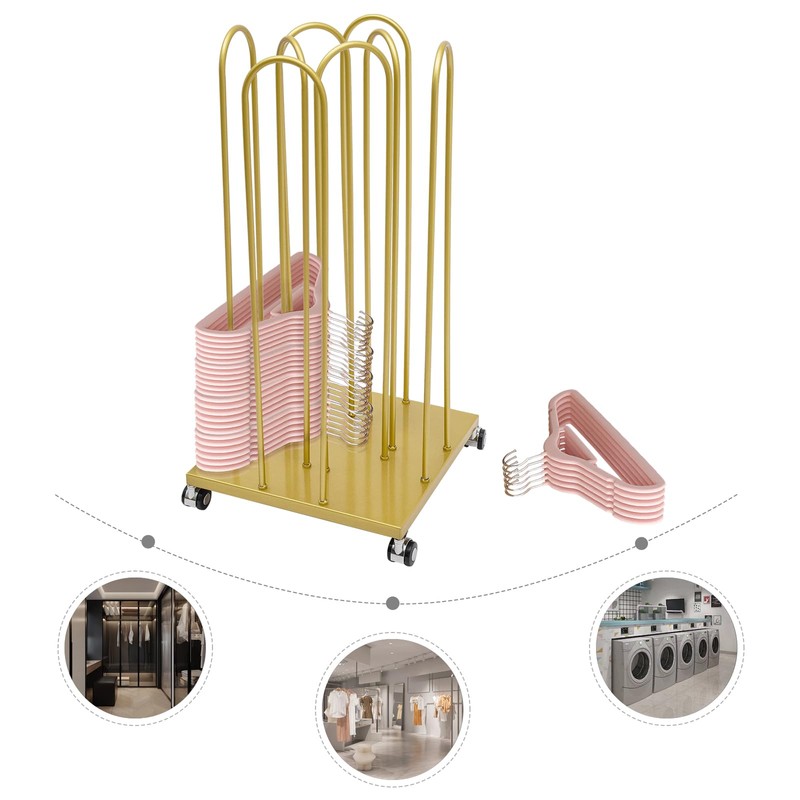 This hanger storage rack is both stylish and practical. It is made of high-quality iron and carbon steel, which is sturdy and durable. It has a small footprint, reasonable use of vertical space, and a strong enough load-bearing capacity to meet your daily hanger storage needs. Its 4 universal wheels allow you to move it easily. With it, you don't have to worry about not being able to find your hangers. It is an ideal hanger organizer.