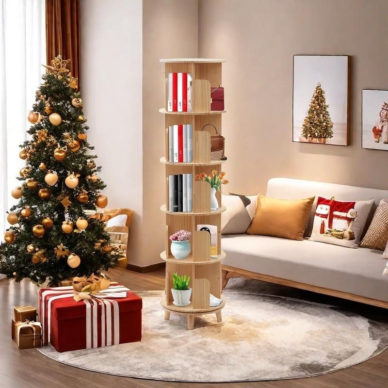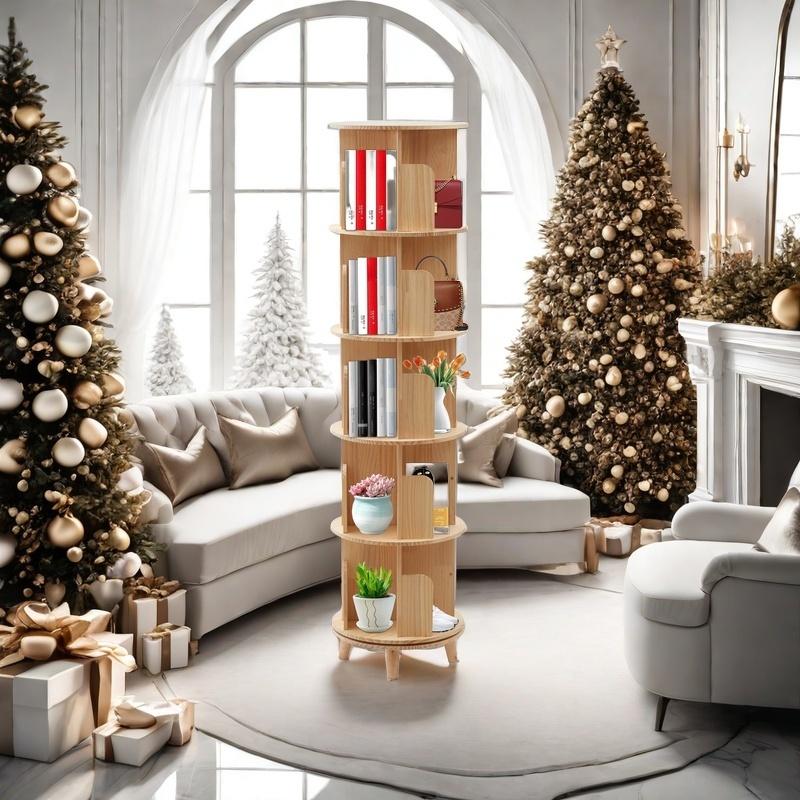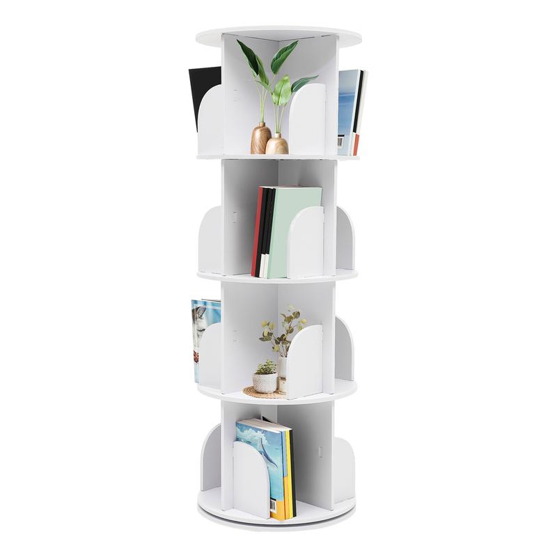 CNCEST Rotating Bookshelf Tower 360° Display Floor Standing Bookcase Bedroom Storage Rack Classroom Organizer Smooth Wooden Christmas Gift Home Decor - Tier: 5-Tier(White)