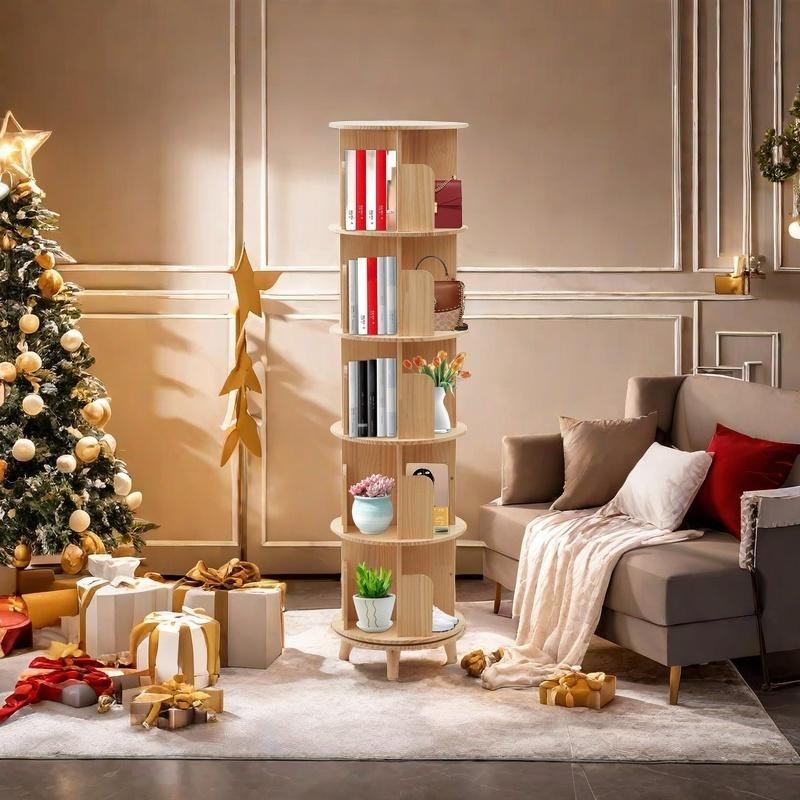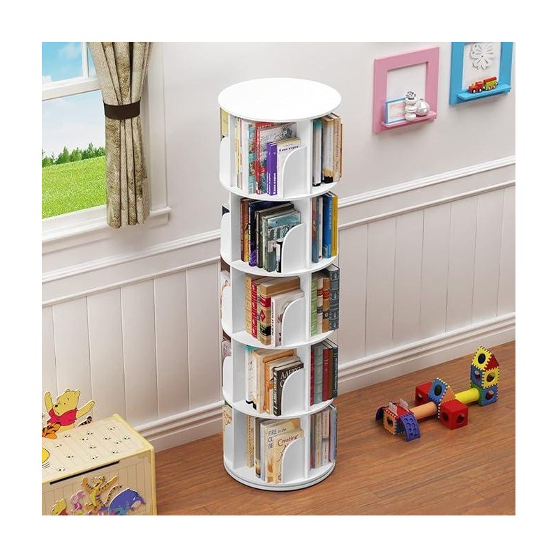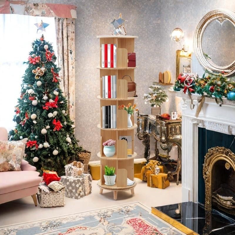 CNCEST Rotating Bookshelf Tower 360° Display Floor Standing Bookcase Bedroom Storage Rack Classroom Organizer Smooth Wooden Christmas Gift Home Decor - Tier: 5-Tier(Wood With Legs)