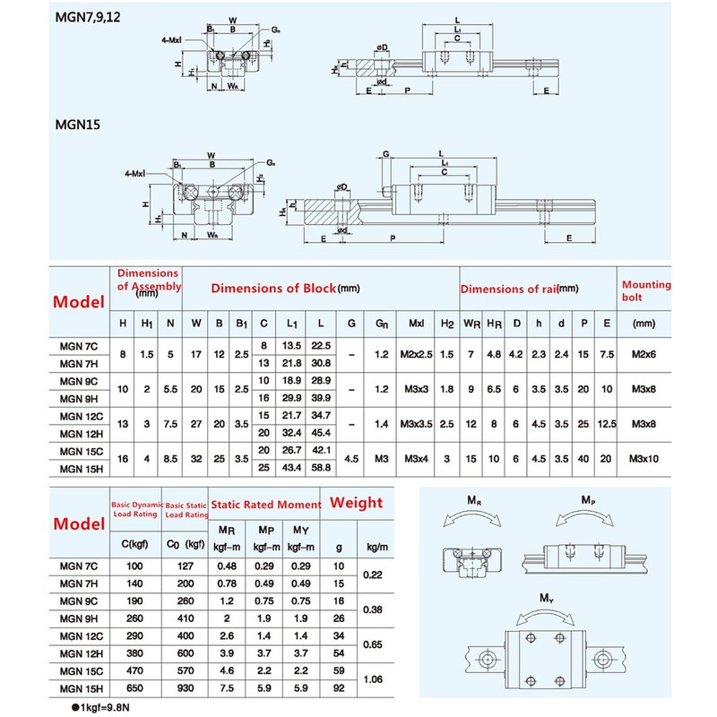 CNCMANS MGN12H 250 mm Miniature Linear Rail Guide MGN12 250 mm Linear Guide Rail MGN12 Linear Rail Linear Guide Rail with MGN12H Bearing Block for CNC Engraving Machine
