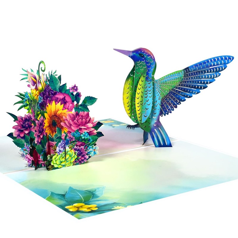 - 【Hummingbird Pop Up Card】Three-dimensional design. When you open this pop up birthday cards, there‘s a blue hummingbird next a patch of flowers. Creates a natural and funny atmosphere, and it will surprise and delight your dad, husband, grandpa, friends, family.