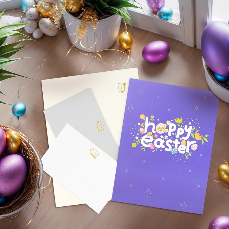 - 【Dog Easter Pop Up Cards】CNLITIHEKA pop up Easter greeting cards are full of Easter fun and charm. When opened a corgi appears in front of you, surrounded by many colored eggs, carrots, baskets and plants.