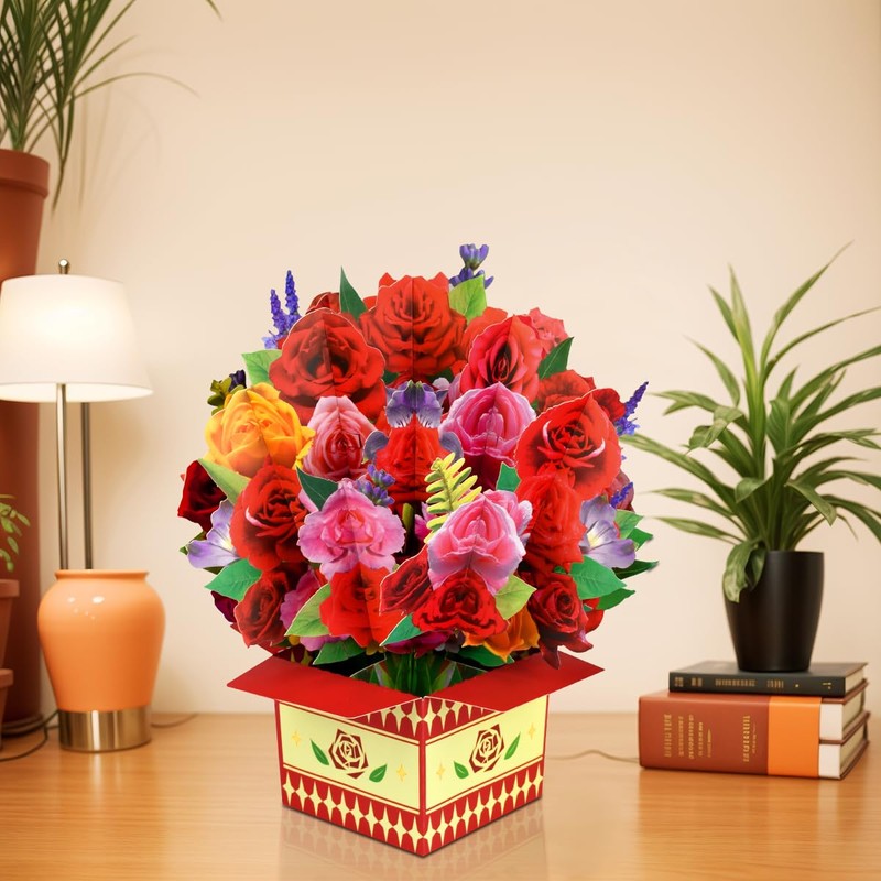 - 【Rose Bouquet Card】This pop up flower card features a three-dimensional design, unique and exquisite paper craft design, the box is filled with beautiful rose flowers, as a Valentine's Day gift, it will surprise and delight your lover or girlfriend.