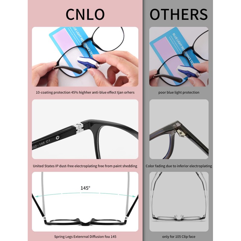 CNLO Blue Light Blocking Glasses,Computer Glasses,Anti Eyestrain, Lightweight Frame Eyeglasses Black Frame Spring Hinge,Men/Women…