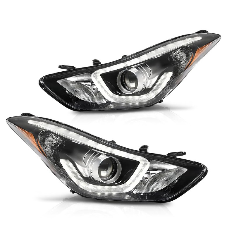 CNNELL Projector LED DRL Headlights Compatible with Hyundai Elantra 2014-2016 HY2502186, 92101-3Y510 Clear lens Black Housing Amber Reflector Driver Right+Left Side