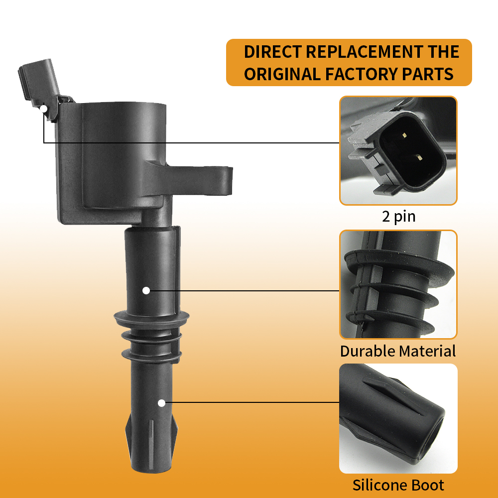 Direct plug-in replacement, Features top grade silicone magnetic steel , and German copper wire and high temperature epoxy. The internal winding design is optimized for higher energy racing application. It deliver 15% more energy than other coil, The advanced bobbin technology increased the durability, all coil products were validated with most strict performance and environmental test, resists shock and vibration. Secondary contacts are made of brass, maximum the energy transfer to spark plug.