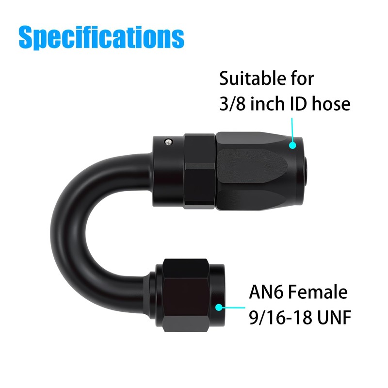 - Specifications: Thread size is AN6 9/16-18 UNF for 3/8 inch ID hose.