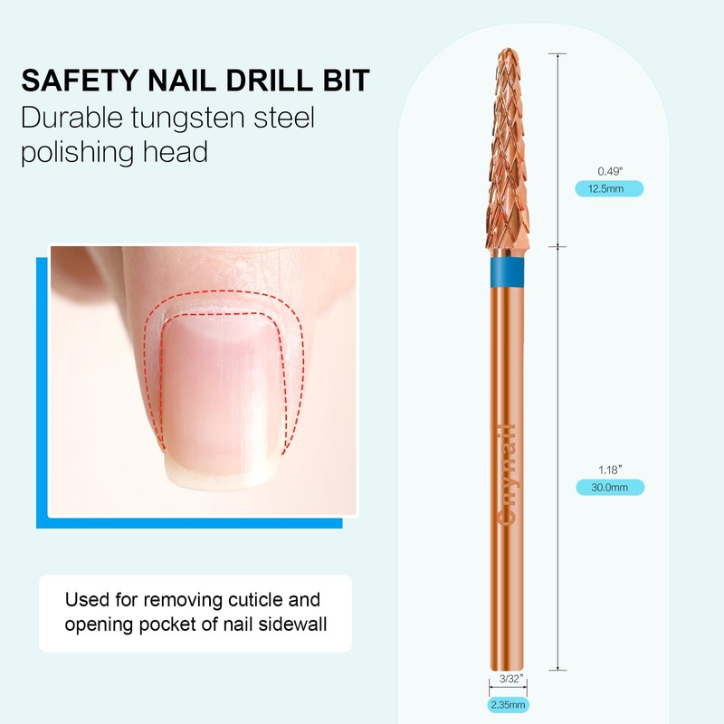 - Safety nail drill bit durable tungsten steel polishing head, used for removing cuticle and opening pocket of nail sidewall. can be reach nail adges without cutting the cuticles and skin around