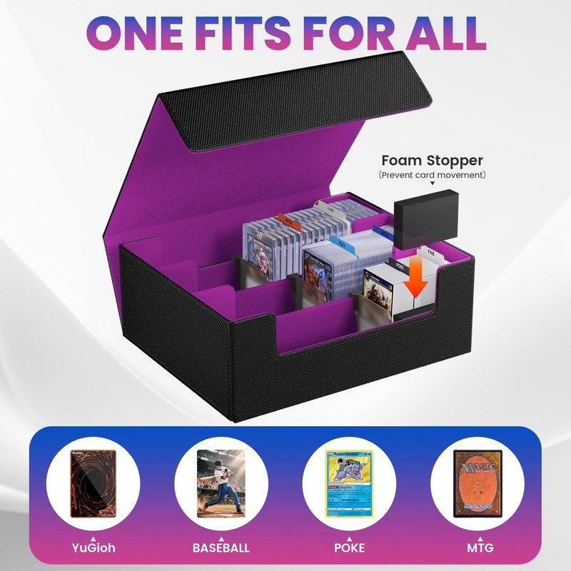 - 【Complete Organization System】- This card box comes with 10 markable dividers to help you organize, sort, and lable different game cards.6 form stoppers ensures that When you store sleeveless cards, you can place the stoppers on the side of the card to prevent the card from moving and causing damage to it.4 supports ensures your collectibles remain upright even when partially filled. Strong magnetic closure keeps everything secure during transport.