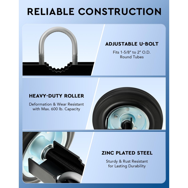 • 1-5/8" to 2" Pass Through: Our gate caster wheel features an adjustable U-shaped bolt for easy mounting on 1-5/8" to 2" round tubes. The serrated bracket ensures a steadfast grip, eliminating concerns about potential slippage