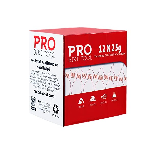 - Pro Quality – If you are after great quality and reliable CO2 canisters at an even better price, see what the Pro Bike Tool CO2 canisters can do for you. We are very proud of our superior quality CO2 cartridges which have been manufactured to the highest standards. Low quality CO2 cartridges are known to potentially have inconsistent quality threads and seals which can damage CO2 inflator heads and therefore ‘fail’ when most needed!