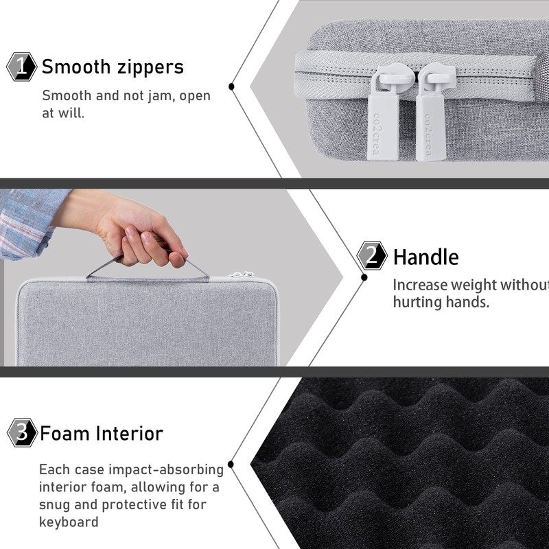 - co2CREA hard protective case is a build-in super quality lining reflects superior taste and ensures a long-lasting performance, the soft anti static lining can protect your mini Bluetooth keyboard from bumps dents and scratches.
