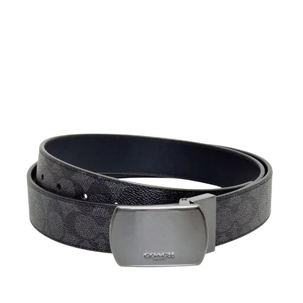 • Coach Men's Belt 1.5 inches (38 mm) Signature Plaque Buckle Cut to Size Reversible Belt; Size: Length: Approx. 53.4 inches (134 cm), Width: Approx. 1.4 inches (3.5 cm). *Due to the nature of the material, there may be slight differences in size adjustable. Reversible to both sides ■ Material: PVC coated canvas x reference calf leather ■Color QBMI5 charcoal x black ■Model number CY941 ■Notes box or storage bag are not included
