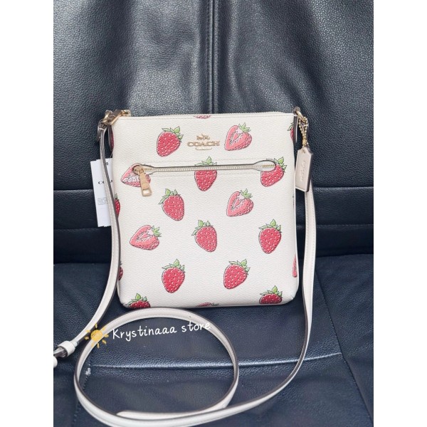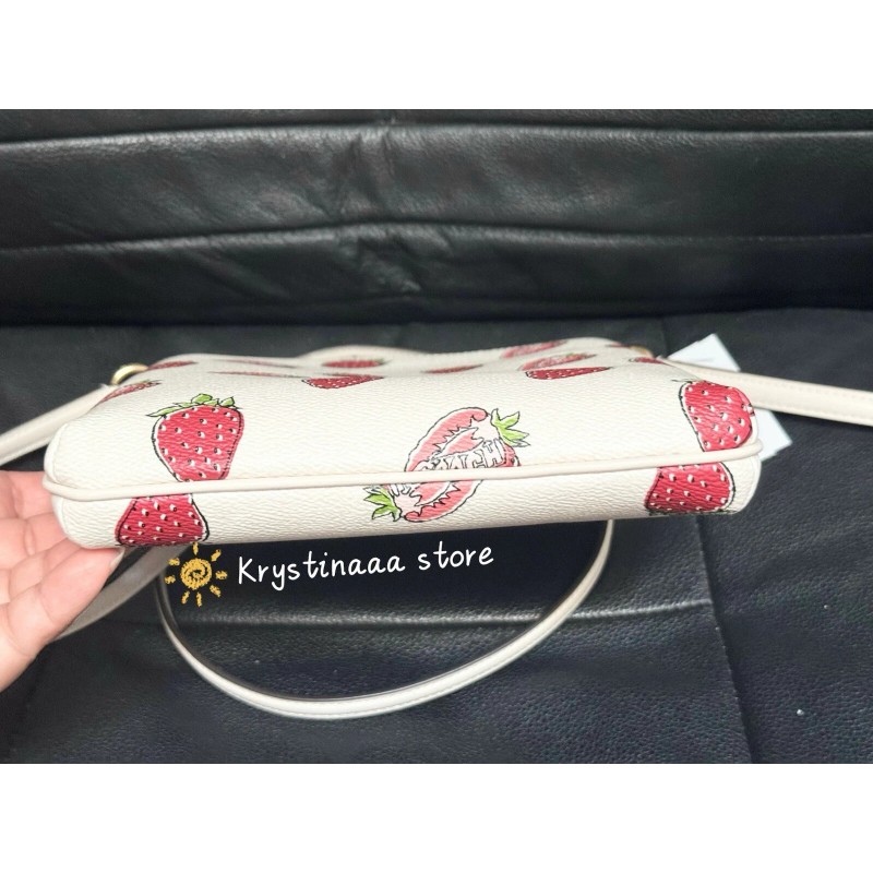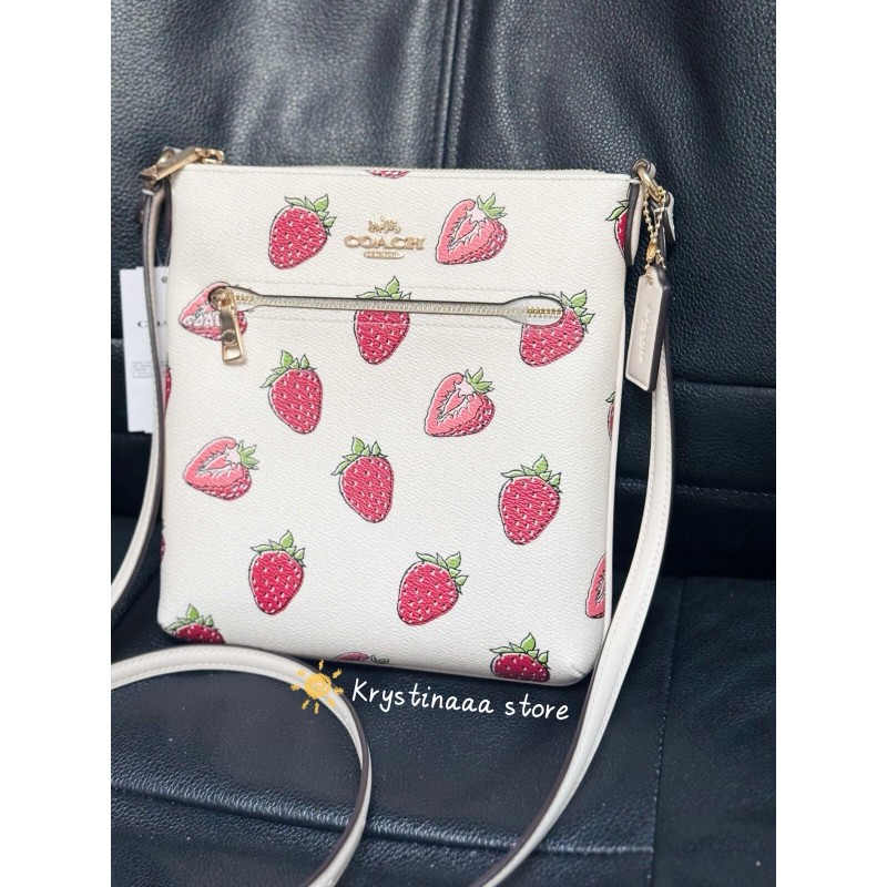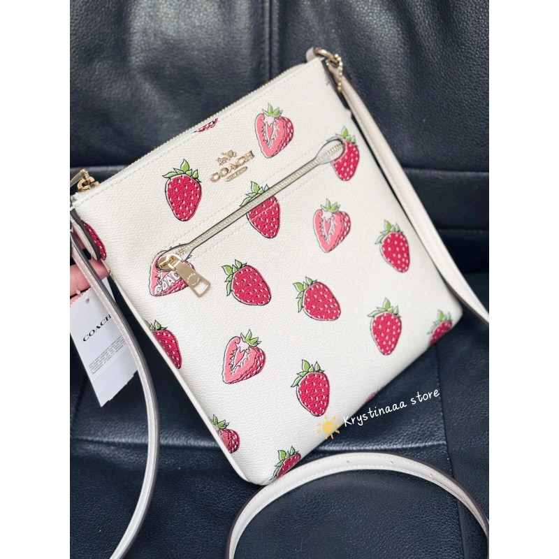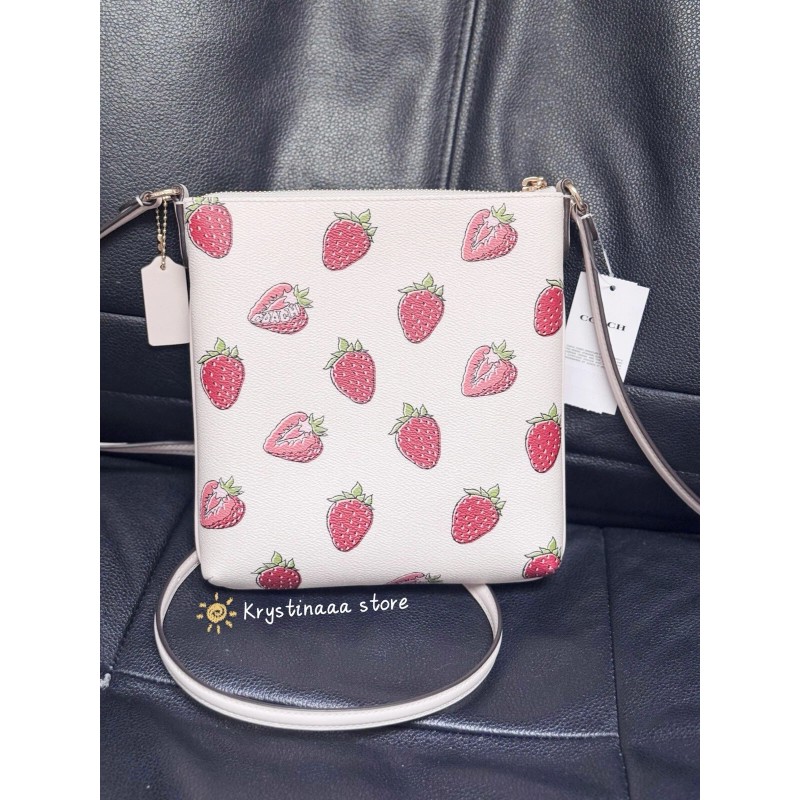 Coach Mini Rowan File Bag With Strawberry Print