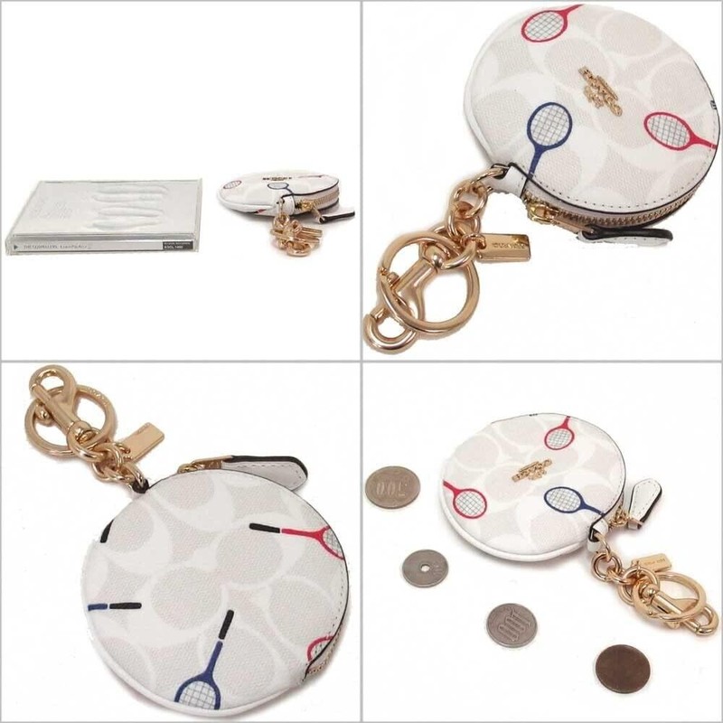 COACH CHALK/MULTI RACQUET PRINT CIRCULAR ZIP COIN POUCH KEY RING FOB C8219
