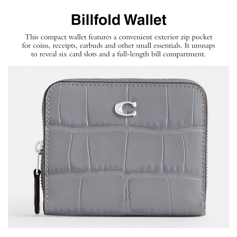- Crocodile Embossed Leather: This sophisticated Coach wallet is crafted of crocodile embossed leather
