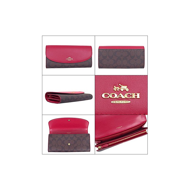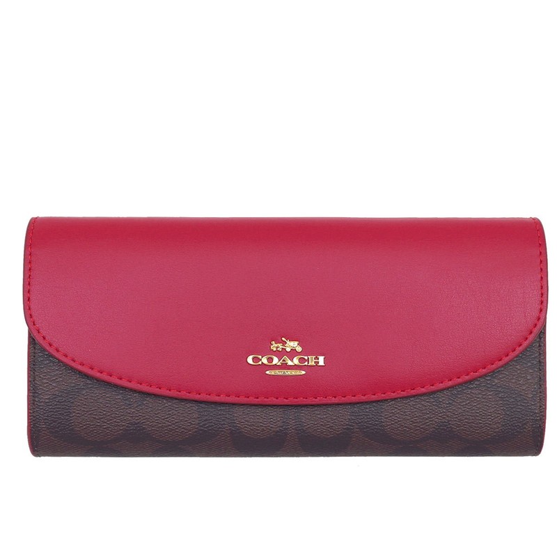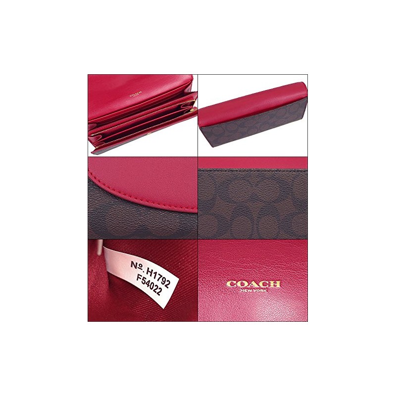 Coach F54022 Long Wallet, Brown x True Red, Signature Long Wallet, Women's