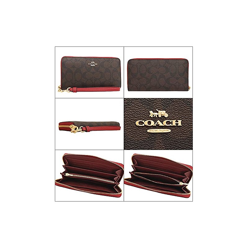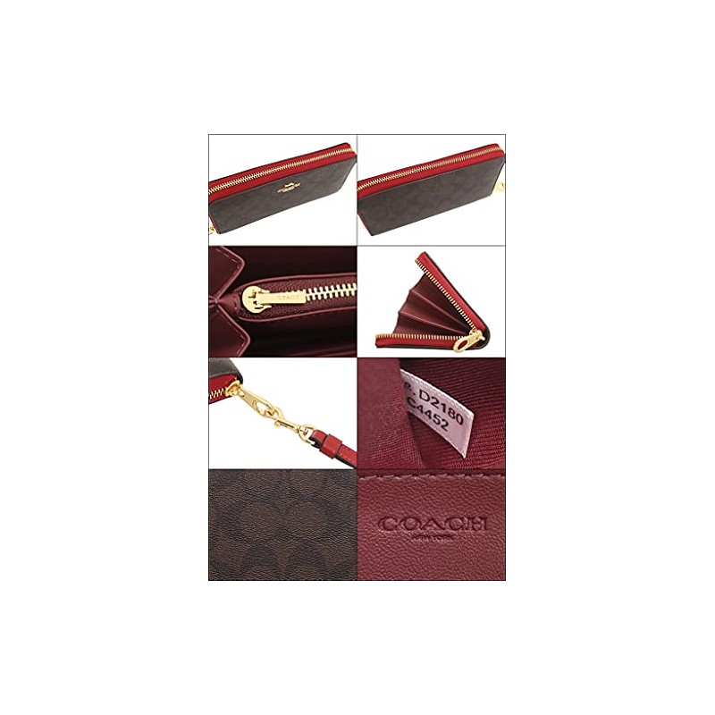 Coach FC4452 C4452 Signature Long Zip Around Wallet with Strap, Women’s, Outlet Product, Brand, Brown x 1941 Red