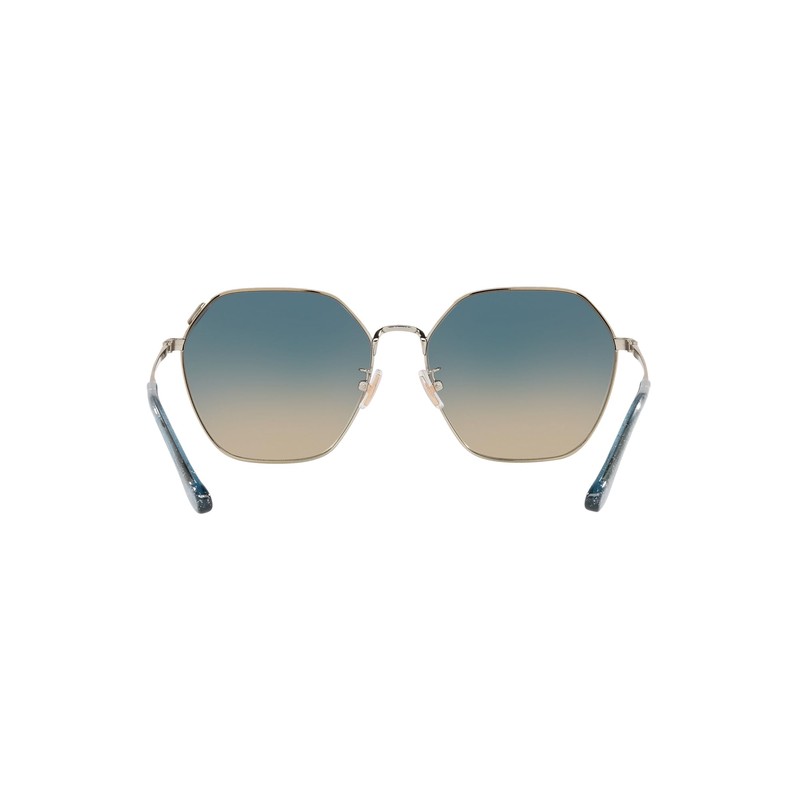- FRAME FEATURES: HC7132 sunglasses feature a hexagonal, shiny light gold frame with blue yellow gradient lenses.