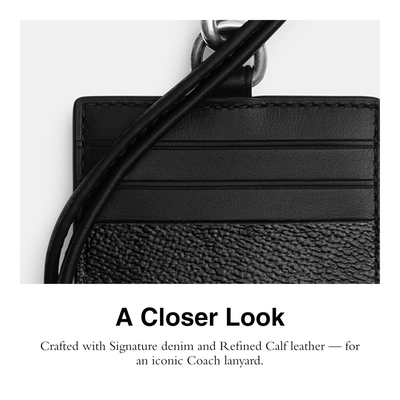 - Signature Denim: Crafted with signature denim & refined calf leather - for an iconic Coach lanyard