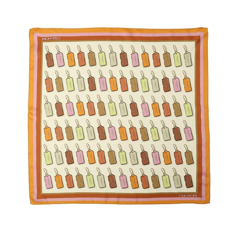- EDITOR'S NOTES: This lightweight silk square scarf is printed with images of our iconic Coach hang tag. The carf features the Coach Badge and is finished with a solid border.