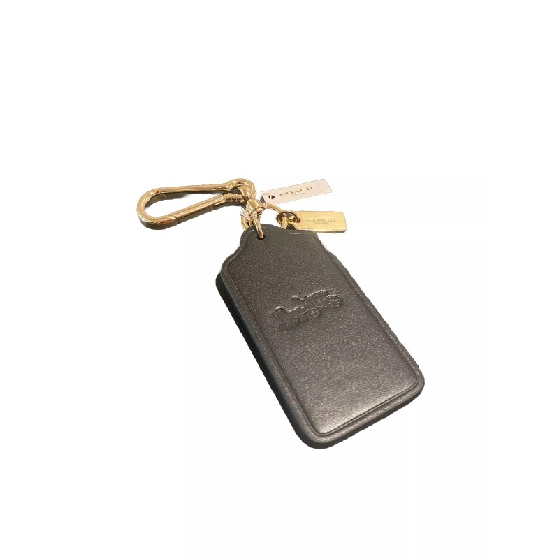 Coach Luggage Tag Hand Bag Backpack Black Leather Heavy Duty Gold Clasp New