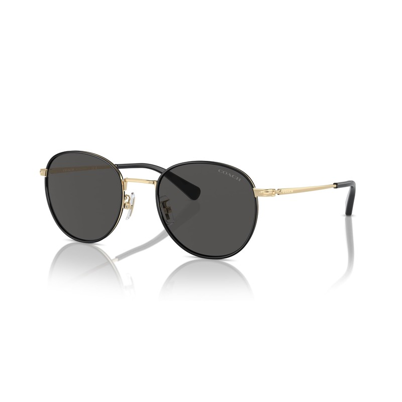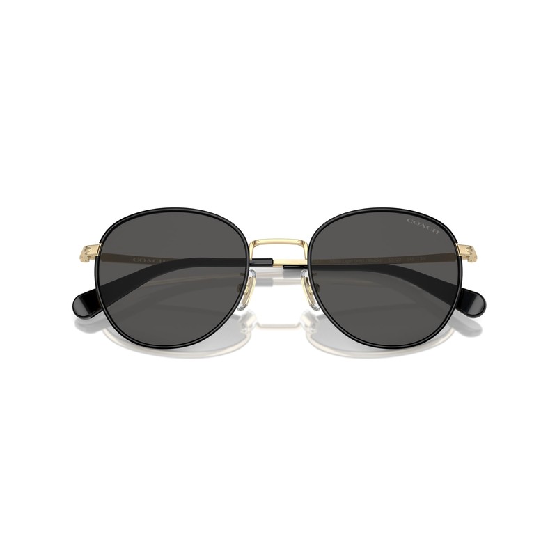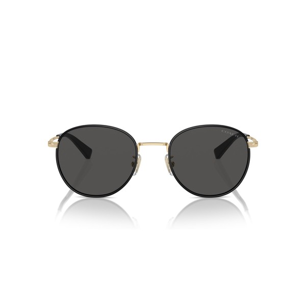 COACH Men's HC7163 Round Sunglasses, Shiny Light Gold/Black/Grey Solid, 52 mm