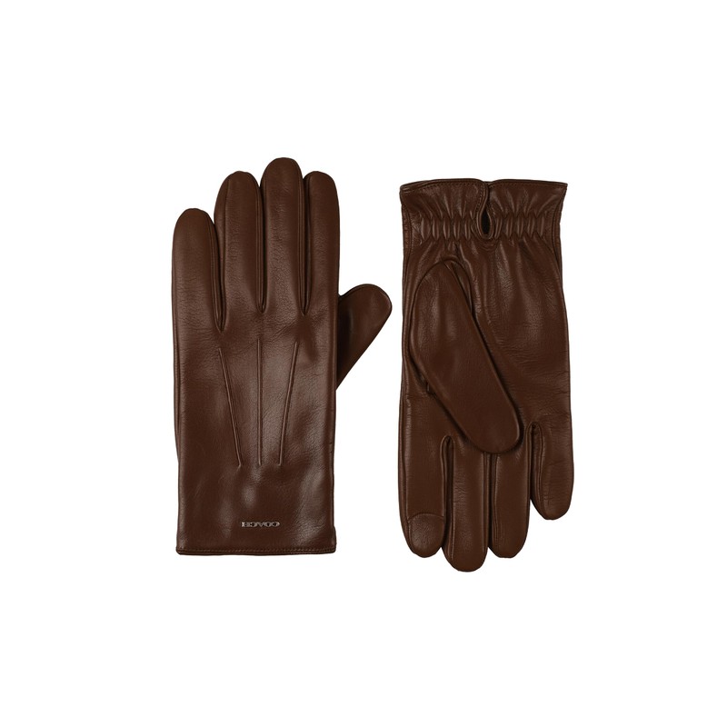 • COLD WEATHER GLOVES: These buttery soft nappa leather gloves keep you warm and well connected: a special coating on the leather makes it compatible with your touch-screen devices. Lined with wool, it's finished with Coach Signature hardware.