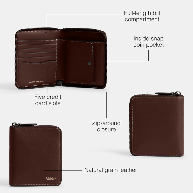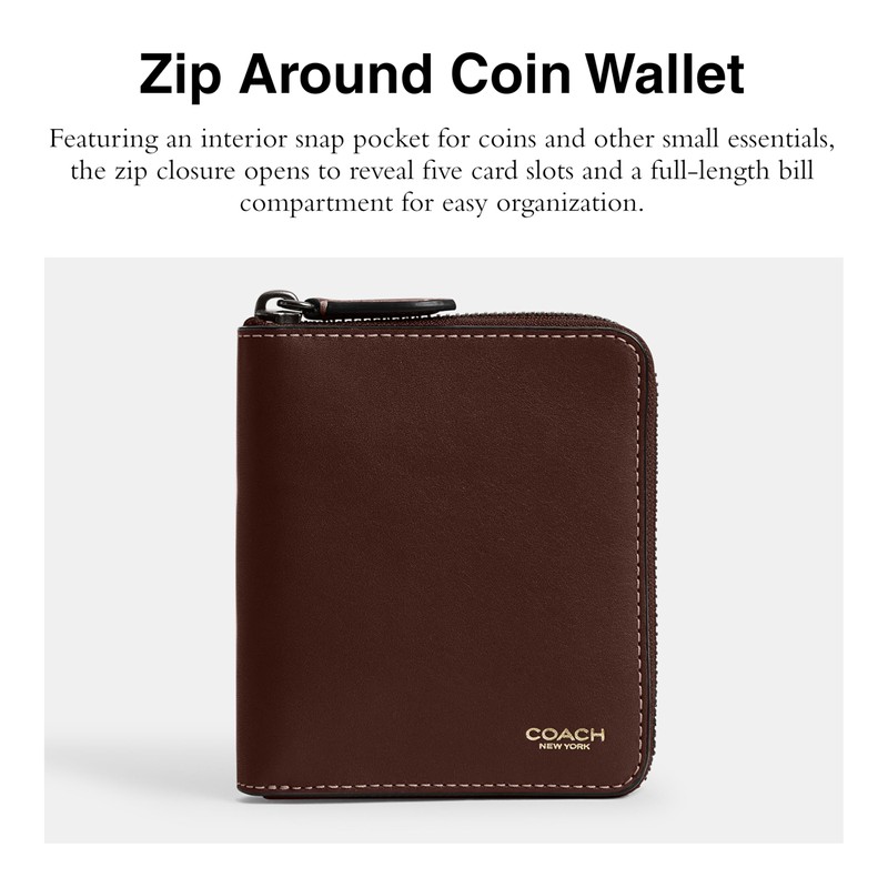 Coach Men's Zip Around Coin Wallet, Maple, One Size