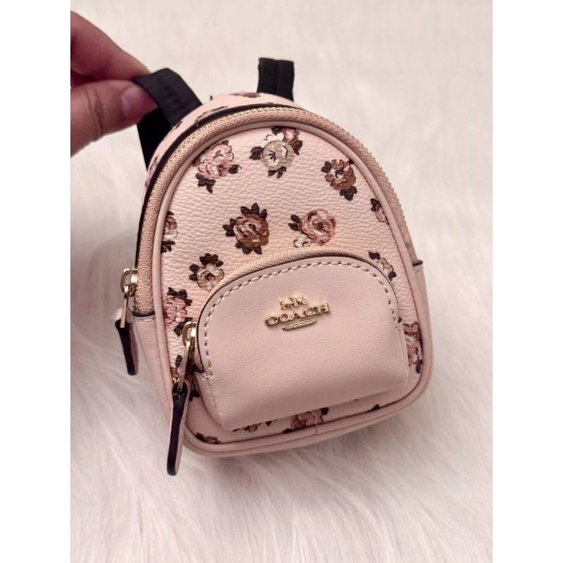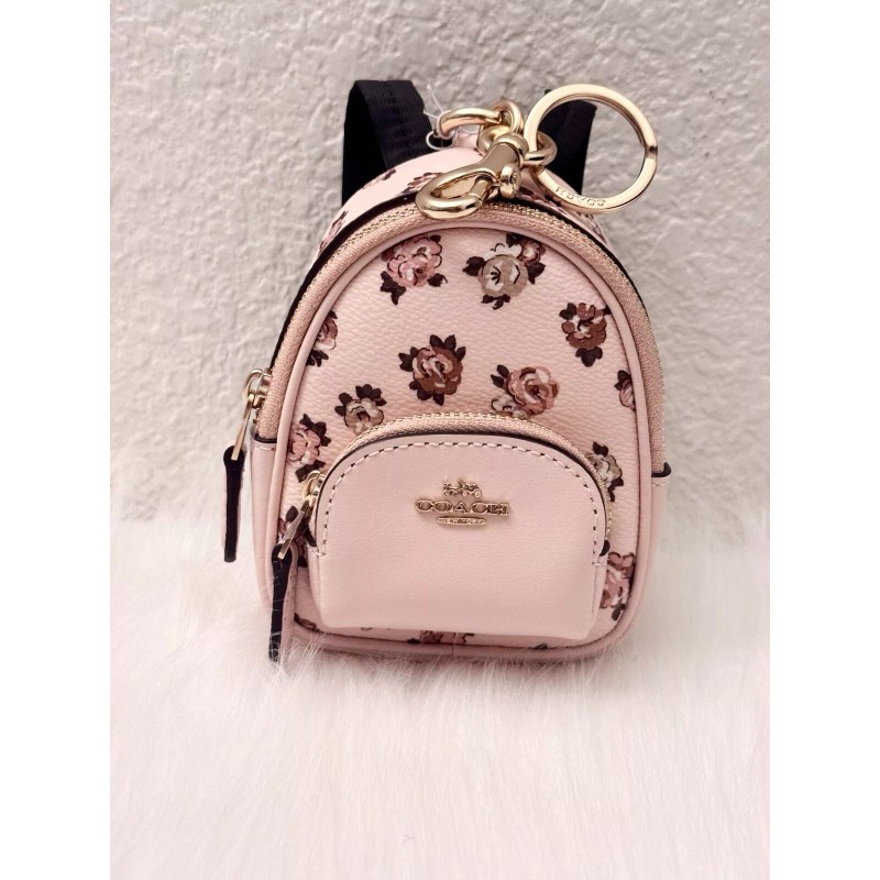 Coach Mini Court Backpack Bag Charm With Rosette Print CAA68 NWT Pink Multi