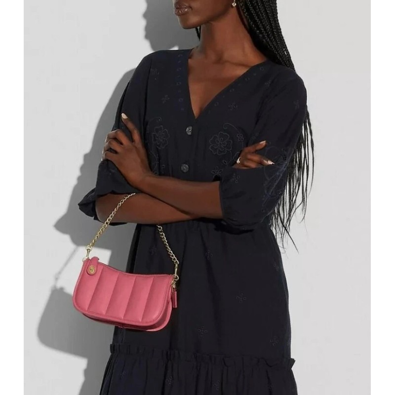 Coach Mini Quilted Swinger 20 Rouge Nappa Leather Clutch C3490