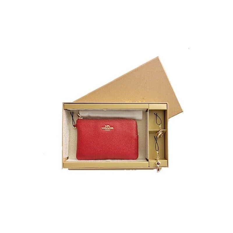 Coach NWT Coach Corner Zip Wristlet Removable Charms Crossgrain Leather CF359 Gift Box