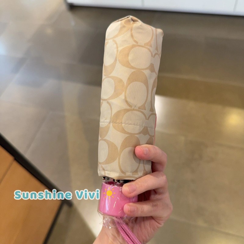 Coach NWT Coach Signature Mini Umbrella C4322 Khaki Fuchsia
