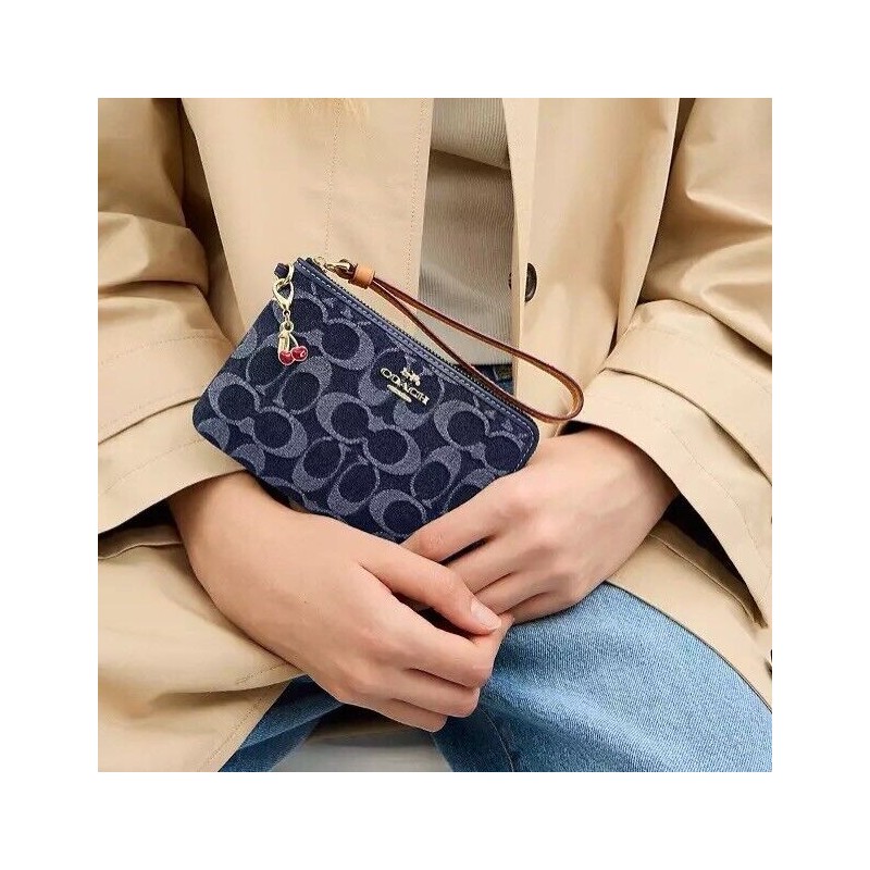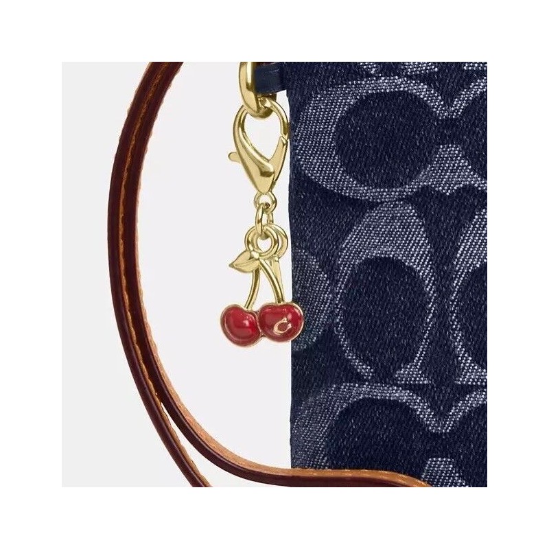 Coach NWT Limited Coach CZ452 Signature Denim Corner Zip Wristlet with Cherry Charm