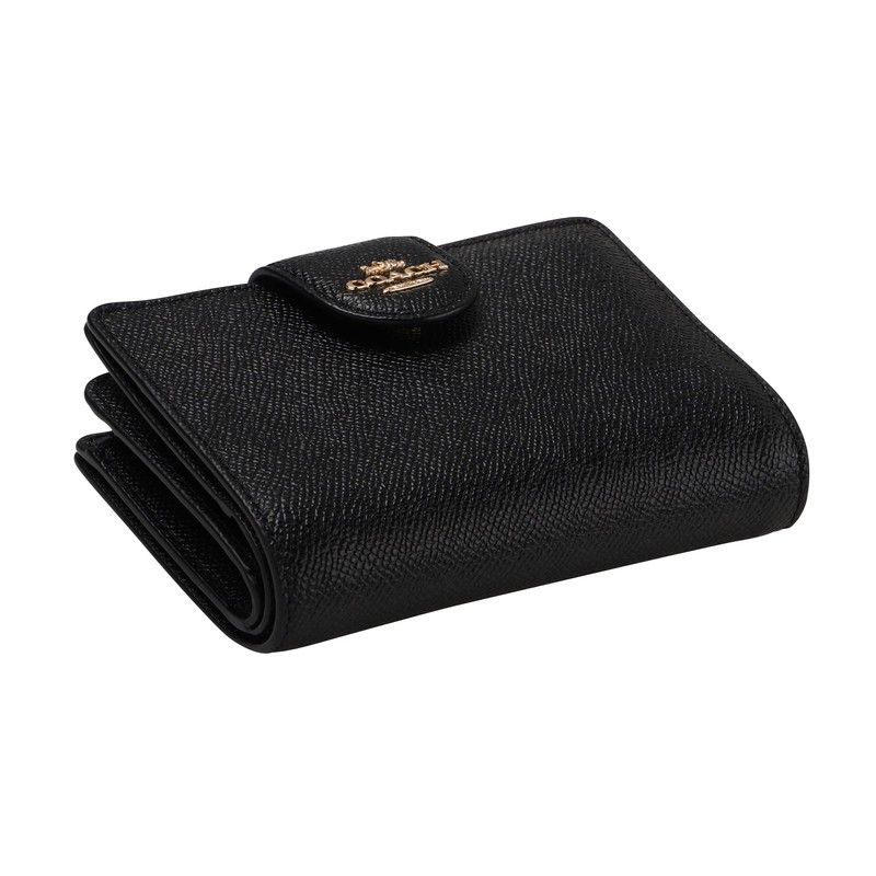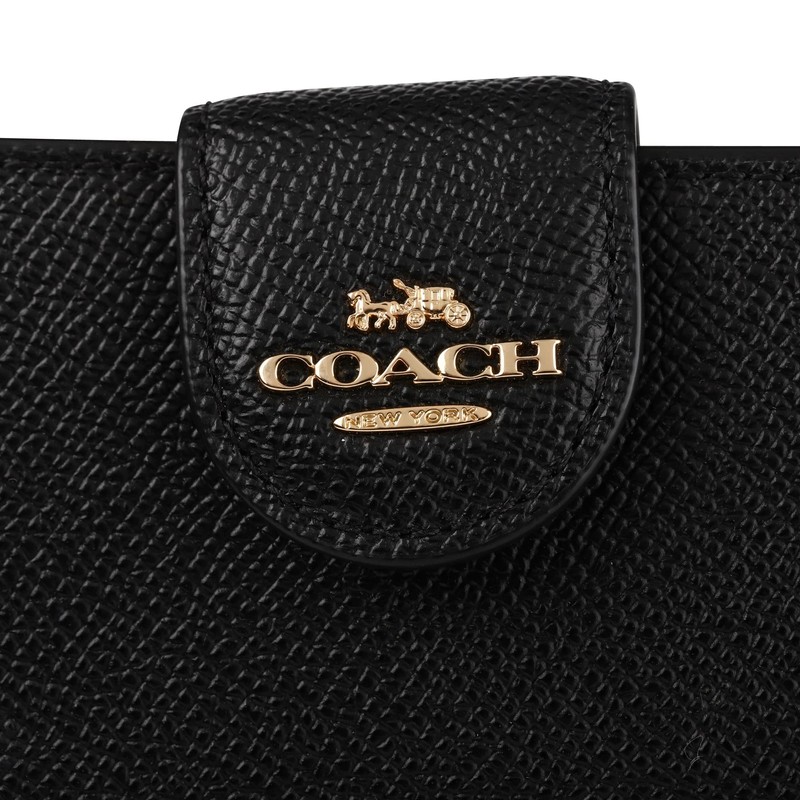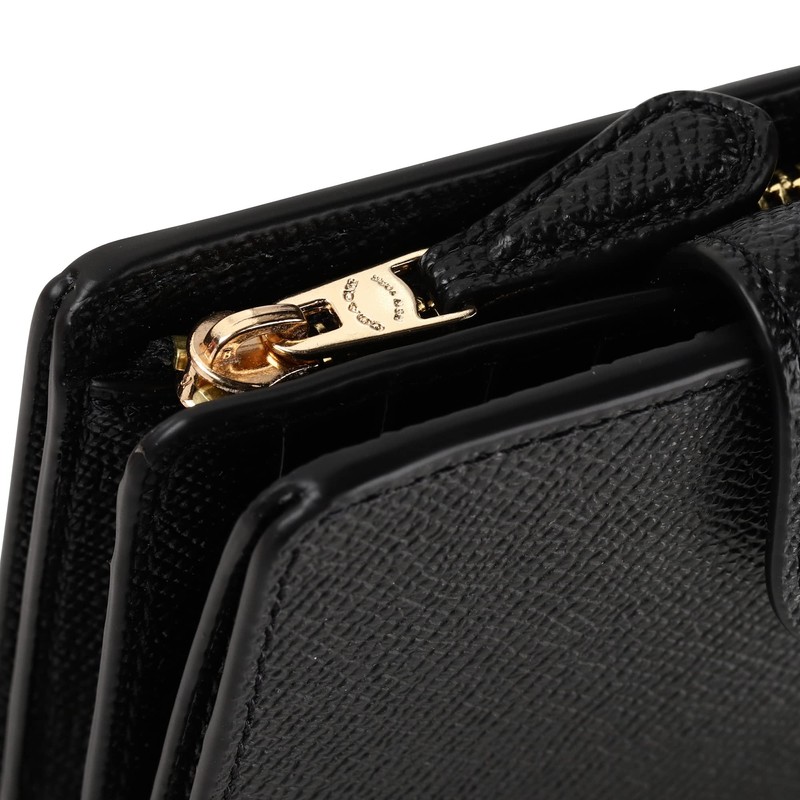 Coach Outlet 6390 IMBLK Bi-Fold Wallet, Medium, Corner Zipper, Black, Gold, Black