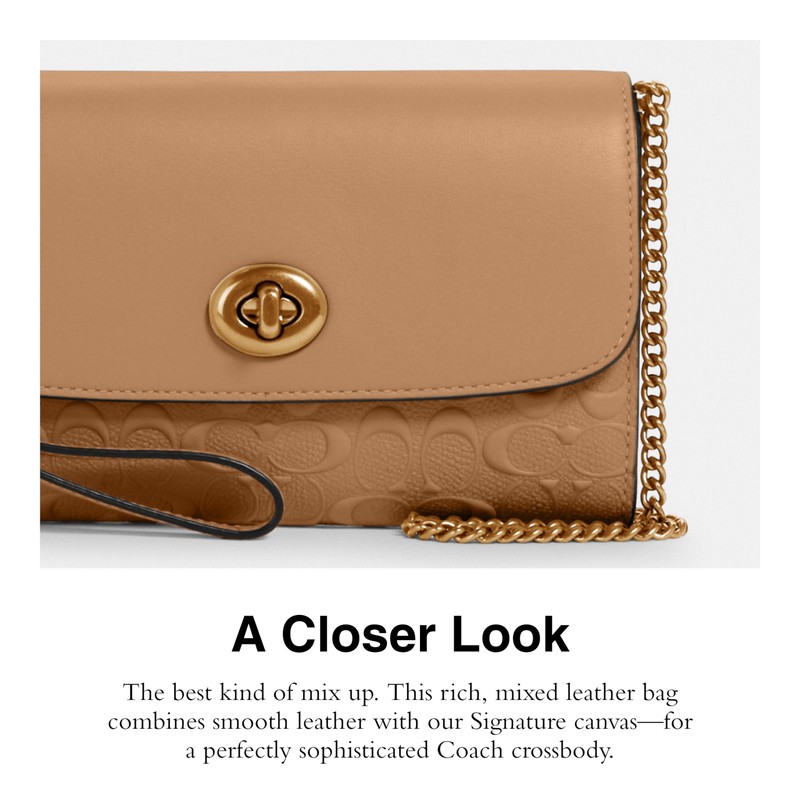 - Signature Leather: The best kind of mix up. This rich, mixed leather bag combines embossed leather paired with smooth leather - for a perfectly sophisticated Coach crossbody