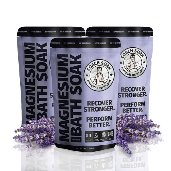 Coach Soak 3 Pack Bundle: Coach Soak Recovery Bath Soak, Epsom Salt Bulk - Bath Salts Bulk, 3 Pack Bundle - Total of 9 Pounds (Lavender)