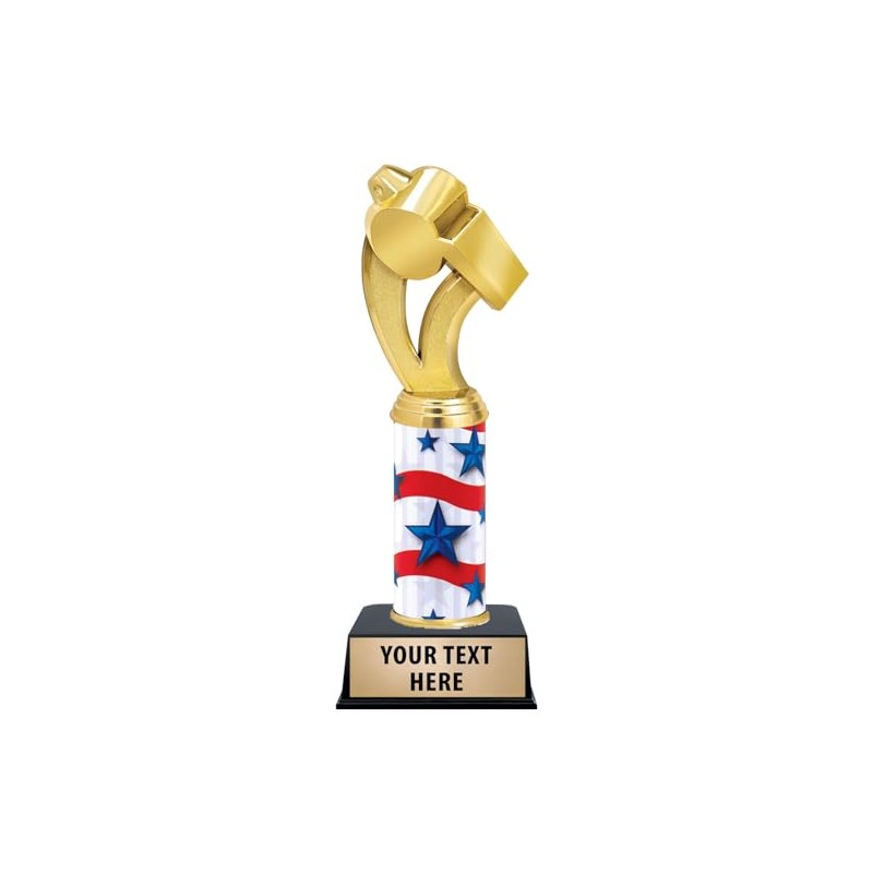 Coach Whistle - Red, White & Blue Column Trophy, 11" Award - Add Your Own Engraving